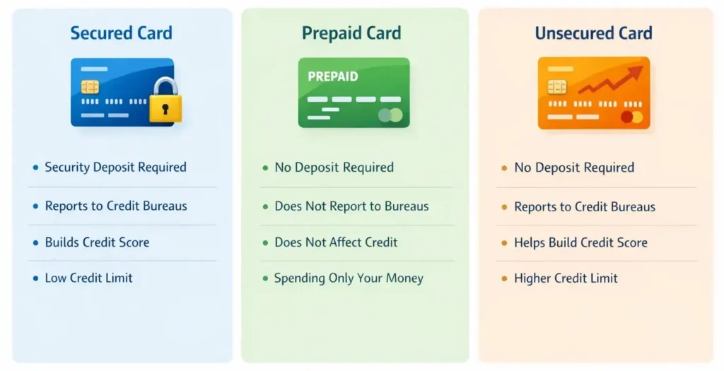 Secured vs Prepaid vs Unsecured Cards (2026)